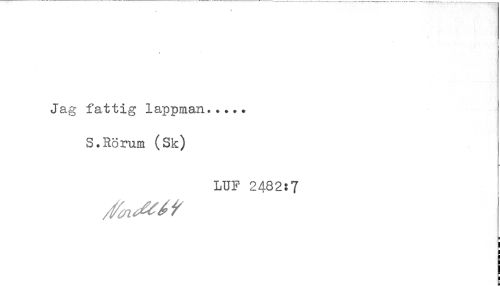 //// Jag fattig lappman..... //// S.Rörum (Sk) //// LUF 2482:7 ////