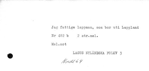//// Jag fattige lappman, som bor uti Lappland //// Nr 482 b 2. str.mel. //// Me1.no t //// ^ LAGUS NYLÄNDSKA FOLKV 3 ////