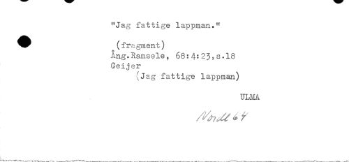 //// ^^ (fragment) //// Ang.Ramsele, 08:4:23? s.18 //// Geijer //// (Jag fattige lappman) //// ULMA ////