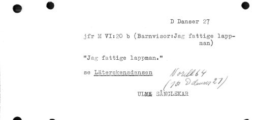 //// jfr M VI:20 b (Barnvisor:Jag fattige lapp- //// man) //// "Jag fattige lappman." //// se Lät er skensdansen ^ //// ULH& SÅNG-LEKAR //// i //// ! //// i ////