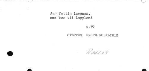 //// Jag fattig lappman, //// smm bor uti Lappland //// s.90 //// STEFFEN ENSTR.FOLKLYRIK ////