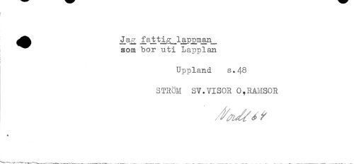 //// ^^ Ja;? fattig; lappman //// som bor uti Lapplan //// ! //// I //// Uppland s.48 //// STRÖM SV.VISOR O,RAMSOR //// + ////