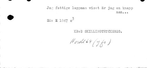 //// Ja.'r fattire lappman visst är jag en knapp //// man... //// ^ SE: E 1347 c^ //// KB:S SKILLINGTRYCKSREG. ////