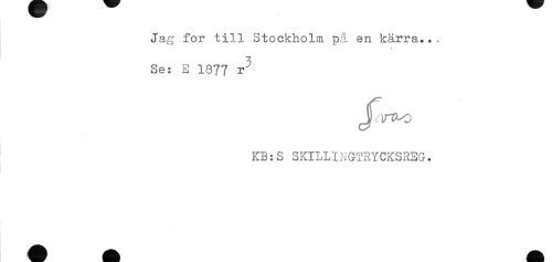 //// Jag for till Stockholm p& en kärra.. //// Se: E 1877 i*' //// jfl^o //// KB:S SKILLr, GTRYCKSREG. ////