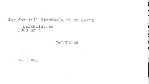 //// - //// Jag for till Stockholm på en kärra //// Dalkullevi sa j //// 1908 nr 4 ^ //// DALKULLA = //// ! //// * — ////