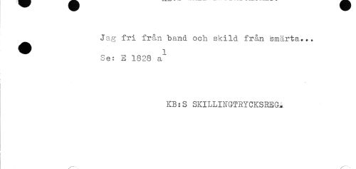 //// J" fri från band. och skilå från smärta... //// 5e: E 1828 a^* //// KB: S SKILLINGTRYCKSREG.* ////