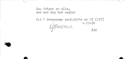 //// Jag frågar er alla, //// som med mig har seglat //// 6:4 ? Svenssons saml.häfte nr 27 (23?) //// s.29-30 //// J ÅBO ////