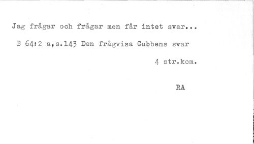 //// Jag frågar och frågar men får intet svar... //// B 64:2 a.yS.143 Den frågvisa Gubbens svar //// 4 str.kom. //// RA ////