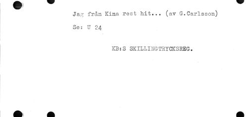 //// Jag från Kina rest hit... (av G.Carlsson) //// Se: U 24 //// KB:S SKILLINGTRYCKSREG. ////