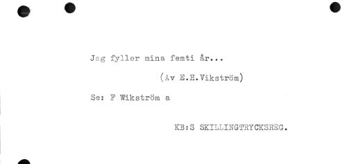 //// Jag fyller mina femti år... //// (Av E.H.Vikström) //// Se: F Wikström a //// i //// KB:S SKILLINGTRYCKSREG. ////