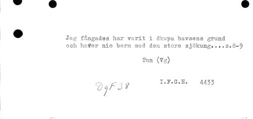 //// ! ^^ Jag fångades har varit i dkupa havsens grund //// och hafer nio barn med den store sjokung....s.8-$ //// Tun (Vg) //// j //// ^ ^ i.F.G.H. 4433 ////