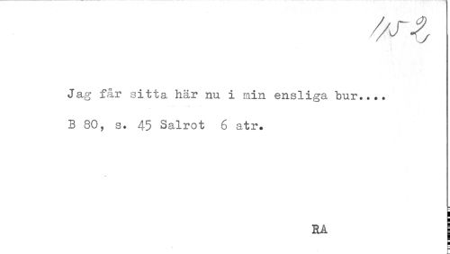 //// Jag får sitta här nu i min ensliga bur.... //// B 80, s. 45 Salrot 6 atr. //// RA ////
