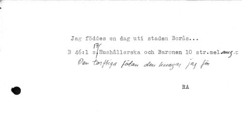 //// * //// Jag föddes en dag uti staden Borås... //// B 46*1 s^Hushålierska och Baronen 10 str.mel^y-t: ////