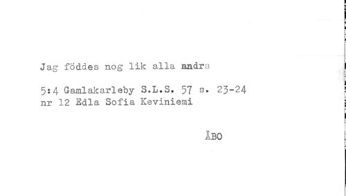 //// Jag föddes nog lik alla andra ! //// 5:4 Gamlakarleby S.L.S. 57 s. 23-24 //// nr 12 Edla Sofia Keviniemi j //// { //// ÅBO ////