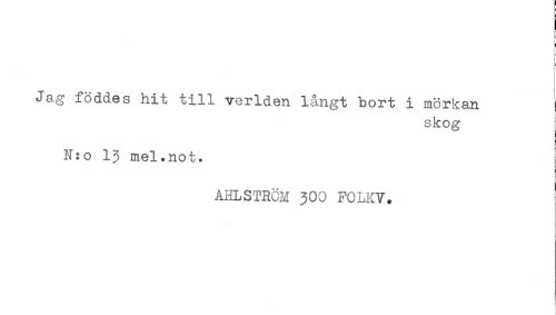 //// - //// .... //// - //// Jag föddes hit till verlden långt bort i mörkan //// skog //// N:o 13 mel.not. //// AHLSTRCM 3OO FOLKV. ////