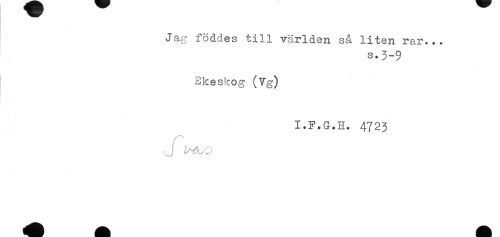 //// Jag föddes till världen så liten rar... //// s.3-9 //// Ekeskog (Vg) //// I.F.G.H. 4723 ////