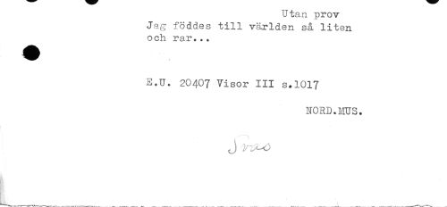 //// Utan prov //// Jag fogdes till världen så liten //// och rar... //// E.U. 20407 Visor III s.1017 //// NORD. HUS. //// - //// t //// - //// ^ _______ _______ \ ////