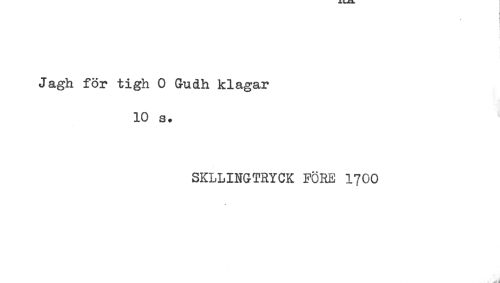 //// j //// Jagh för tigh O Gudh klagar //// 10 s. //// SKLLINGTRYCK FÖRE 1700 ////
