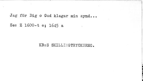 //// * //// Jag för Dig o Gud klagar min synd... //// Se: Z 1600-t e; 1645 a //// KB:S SKILLIN GTRYCKSREG. //// 1 ////