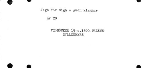 //// Jagh för tigh o gudh klaghar //// nr 28 //// VISBÖCKER I5-0.I6OO-TALENS //// GYLLENHÅRS //// A ^ ////
