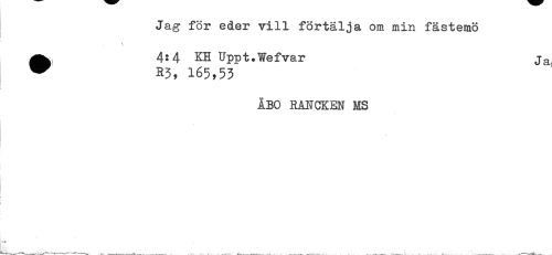 //// Jag för eder vill förtälja om min fästemö //// ^ 4:4 KH Uppt.Wefvar //// ^ R3, 165,53 //// ÅBO RAITCKEN MS //// ! //// ! //// i //// k'. ////
