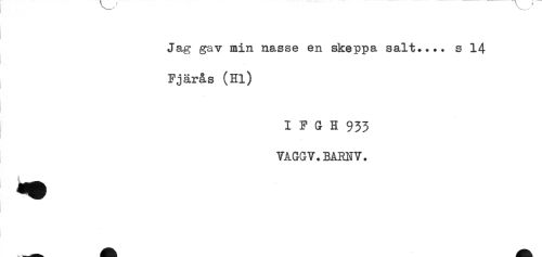 //// Jag gav min nasse en skeppa salt.... s 14 //// Fjärås (Hl) //// I F G H 933 //// VAGGV. BARN V. ////