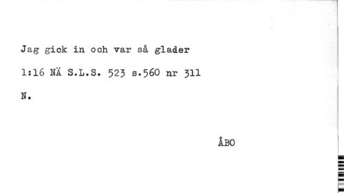 //// Jag gick in och var så gläder //// 1:16 NÄ S.L.S. 523 S.56O nr 311 //// N. //// f //// ÅBO ////