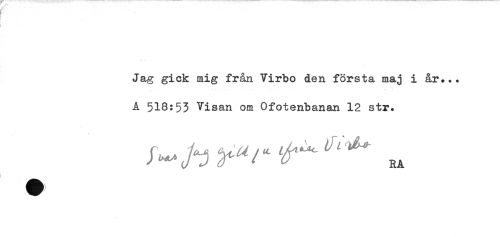 //// ' //// ) //// Jag gick mig från Virbo den första maj i år... //// - -...... - .. ...... . . * //// A 518:53 Visan om Ofotenbanan 12 str. ////