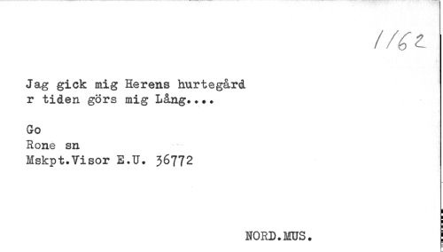 //// Jag gick mig Harens hurtegård //// r tiden görs mig Lång.* *. //// So //// Rone sn //// äskpt.Visor E.U. 36772 //// NORD.MUS. ////