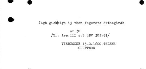 //// ^^ Jagh gick^nigh ij then fegerste örthegårdh //// nr 30 //// /Tr. Arw.III s.5 jDV 204:8l/ //// VISBOCKER 15-0.1600-TALENS //// OLUFFSON ////