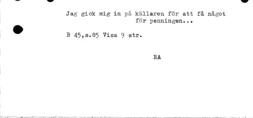 //// Jag gick mig in på källaren för att få något //// för penningen... //// ^ B 45,s.85 Visa 9 str. //// RA ////