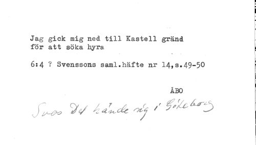 //// Jag gick mig ned till Kastell gränd //// för att söka hyra ^ //// * * t //// t* //// 6:4 ? Svenssons sajml.häfte nr 14,s.49-50 } //// t //// < //// i //// ÅBO //// * ////