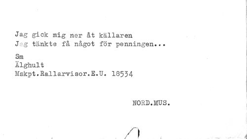 //// Jag gick mig ner åt källaren //// Jag tänkte få något för penningen..* //// Sm //// Alghult //// Mskpt.Rallarvisor.E.U. 18534 //// NORD.MUS. ////