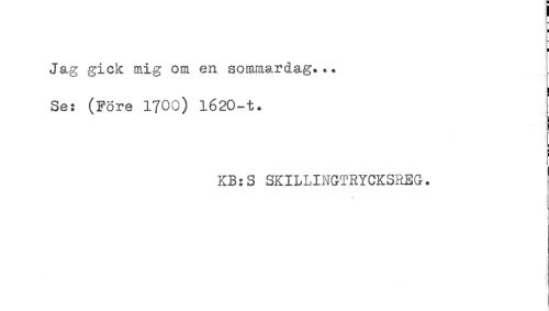 //// Jag gick mig om en sommardag... //// Se: (Före 1700) l620-t. //// KB:S SKILLINGTRYCKSREG. ////