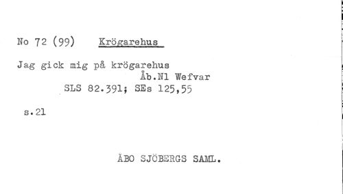 //// No 72 (99) Krö^arehus //// Jag gick mig på krögarehus //// Åb.Nl Wefvar //// SLS 82-391; SEs 125,55 //// s.21 //// ÅBO SJÖBERGS SAML. ////