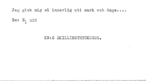 //// Jag gick mig så innerlig uti mark och ange..*. //// Se: B^ n28 //// KB:S SKILLINGTRYCKSREG+ ////