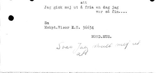 //// Jag gick mej ut å fria en dag jag //// var så fin.... //// ^ Sm //// Mskpt.Visor E.U. 36634 //// NORD.MUS. //// j, ^ - " ////