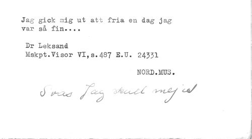 //// Jag gick mig ut att fria en dag jag //// var så fin.... //// Dr Leksand //// Mskpt.Visor VI,s.48? E.U. 24331 //// NORD.MUS. //// t) ^^ / ^ w^/ //// ! ////