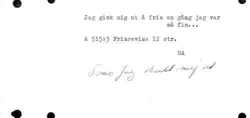 //// Jag gick mig ut å fria en gång jag var //// så fin... //// A 515:3 Friarevisa 12 str. //// RA ////