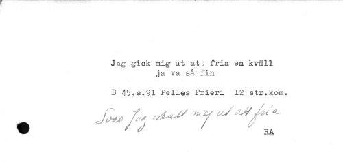 //// Jag gick mig ut att fria en kväll //// ja va så fin //// B 45?s.91 Pelles Frieri 12 str.kom. //// ^^^ RA ////