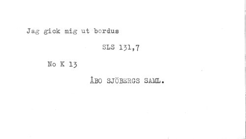 //// Jag gick mig ut bcrdus //// SLS 131,7 //// No K 13 //// ÅBO SJÖBERGS SAML. //// i //// I ////