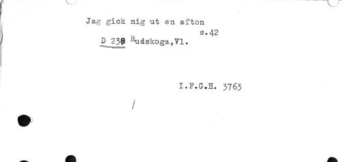//// I Jag gick mig ut en afton //// !) s. 42 //// / D 239 Rudskoga,Vl. //// I.F.G.H. 3763 //// / ////