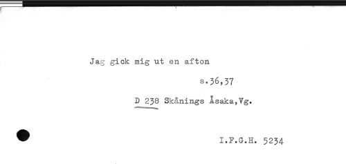 //// R //// Jag gick mig ut en afton //// s.36,37 //// D 238 Skånings Åsaka,Vg. //// ^ I.F.G.H. 5234 ////