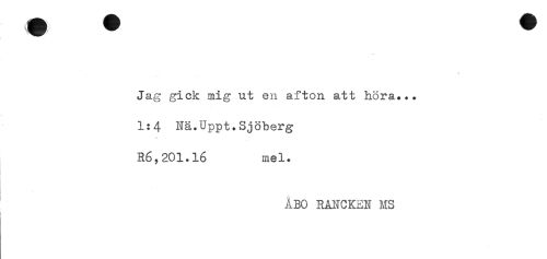 //// Jag gick mig ut en afton att höra... //// 1:4 Nä.Uppt.Sjöberg //// R6,201.l6 mel. //// ÅBO RANCKEN MS ////