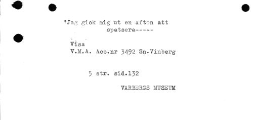 //// "Jag gick mig ut en afton att //// spatsera----- //// Visa //// V.M.A. Acc.nr 34$2 Sn.Vinberg //// 5 str. sid.132 //// VARBERGS MUSEUM ////