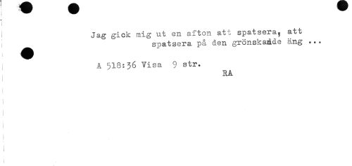 //// i Jag gick mig ut en afton att spatsera, att //// spatsera pa den grönskadde äng ... //// i A 518:36 Visa 9 str. //// RA //// ! //// < ////