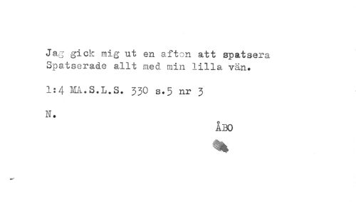 //// Jag gick mig ut en afton att spatsera //// Spatserade allt med min lilla vän. //// 1:4 RA.S.L.S. 330 s.5 nr 3 //// N. //// ABO ////