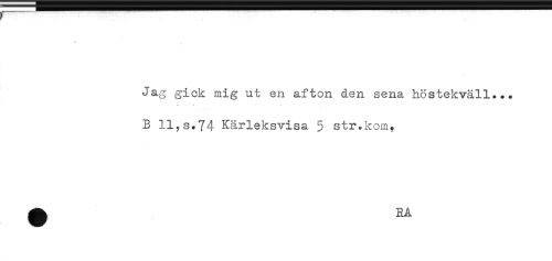 //// ? ... //// Jag gick mig ut en afton den sena höstekväll... //// * -., * < //// B ll.s.74 Kärleksvisa 5 str.kom, ////