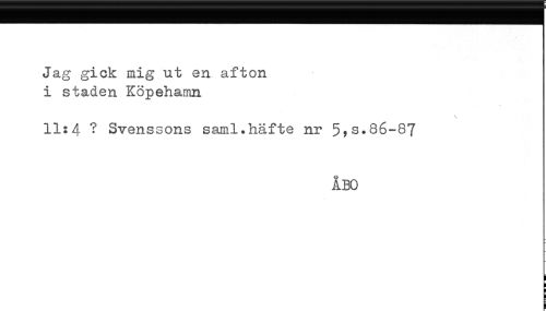 //// Jag gick mig ut en afton //// i staden Kopehamn //// 11:4 ? Svenssons saml.häfte nr 5,s.86-87 //// ÅBO //// ! //// ! ////