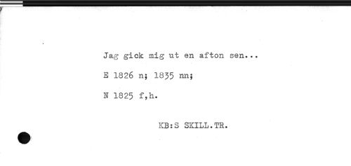 //// Jag gick mig ut en afton sen... //// E 1826 n; 1835 nn; //// N 1825 f,h. //// KB:S SKILL.TR. ////